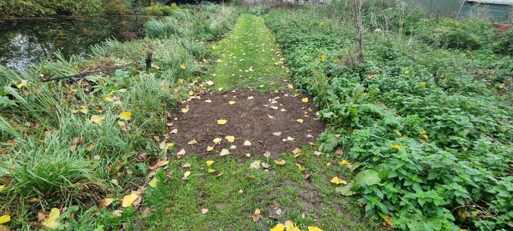 The dip in the path along the arm stretch of the pond has been filled in, improving access and safety. The mower has also been taken away for winter storage.