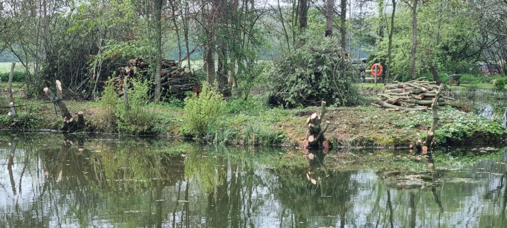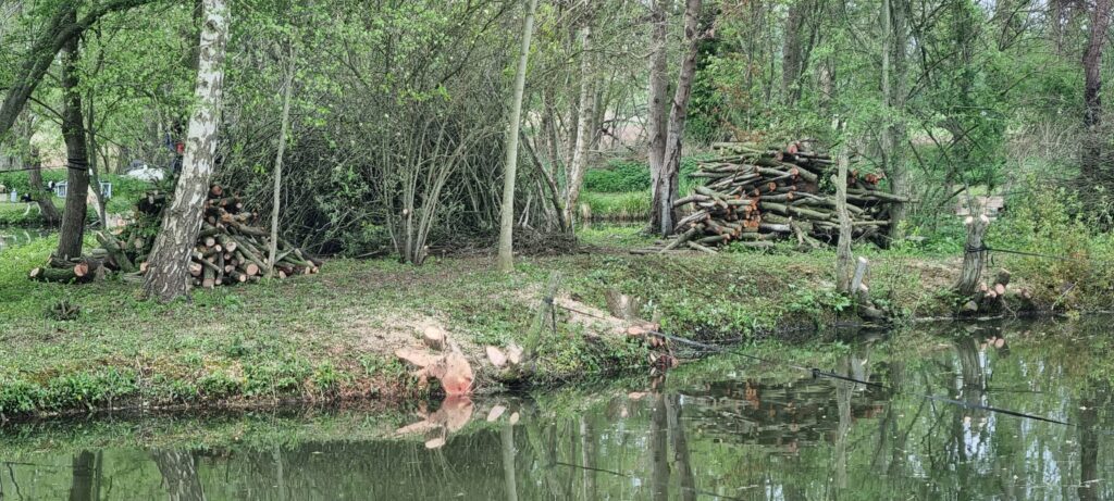 We’re thrilled to report that another fantastic work party has taken place at Plough Pond! Thanks to the efforts of our dedicated volunteers, the remaining 50% of trees overhanging the island margin have now been expertly removed, significantly improving access and the health of the habitat.